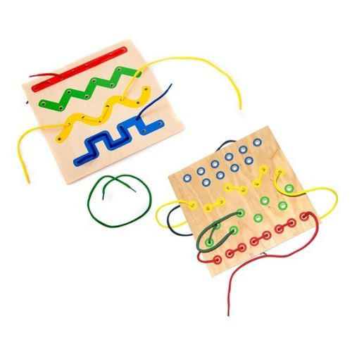 Виріб у вигляді набору з основи-планшета з 34 отворами різного кольору і 4 шнурівок. Гра розвиває дрібну моторику, логіку, уяву, творчість.