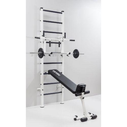 На турніку передбачені ручки з ПВХ для підтягувань різними хватами, щоб тренування спини принесло помітні результати. Бруси оснащені опорою під спину і підлокітниками з поліуретану. Ці деталі дозволяють віджиматися найбільш продуктивно і безпечно. Лава призначена для вправ на прес і зі штангою. Унікальна конструкція дозволяє тренуватися з додатковими обтяженнями в різних положеннях, щоб опрацювати м'язи комплексно. 4 поліуретанових валики дозволяють зафіксувати ноги і зайняти положення головою вгору для вправ зі штангою. Ефективна схема тренувань дозволяє зміцнити мускулатуру і поліпшити стан здоров'я.
