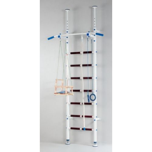 Спеціально для маленьких спортсменів в комплектацію включено навісне обладнання. У набір входить 3 предмети: канат, гімнастичні кільця і мотузкова драбина. З їх допомогою малюки будуть проводити час з користю і задоволенням, розвиваючи гнучкість і спритність.