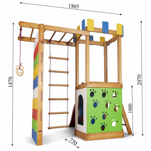 Дитячий ігровий комплекс зроблений з натурального дерева. Покритий антисептиком і тонуванням, для продовження служби комплексу. Компактна. Двосхилий дах захистить від сонця або дощу, забезпечивши комфортну гру і відпочинок. Гірка має бічні бортики, для додаткової безпеки. Зроблена з пластику високої щільності. Стійка до розтріскування і сонячним променям, несприятливих погодних умов. На майданчику зможе грати компанія дітей. Це допоможе розвинути соціальні навички, терпіння, взаємодопомоги. Підійде для двору або дитячого садка. Завдяки дитячому комплексу, ігри і фізичні вправи можна проводити на вулиці.