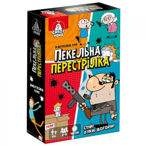 Настільна гра "Пекельна перестрілка" від Vladi Toys — це азартне випробування для тих, хто готовий перевірити свою стресостійкість. Кожен гравець намагається стати єдиним, хто залишиться в живих, знищуючи суперників за допомогою різноманітної зброї — від уявного пістолета до базуки. Стріляти чи захищатись — вирішувати вам! Гра тренує вміння програвати і вчить йти до мети незважаючи на перешкоди. Для 2-5 гравців, вік 12+. Час гри: 10-30 хвилин.