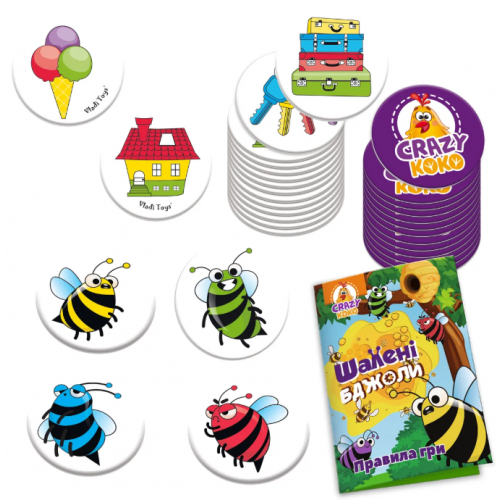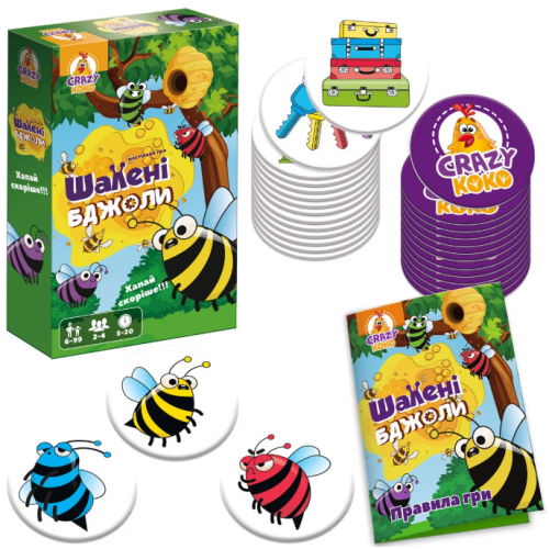 Шалені бджоли чекають на тебе! Це захоплива настільна гра для дітей, де вам потрібно запам'ятовувати кольори та викладати бджілок наввипередки. Протестуйте свою уважність і кмітливість, збираючи фішки з яскравими малюнками, щоб стати переможцем! Весела гра для 2-4 гравців, яка підійде для всієї родини. Тривалість гри — 5-20 хвилин. Ідеально для дітей від 6 років. Українська мова.
