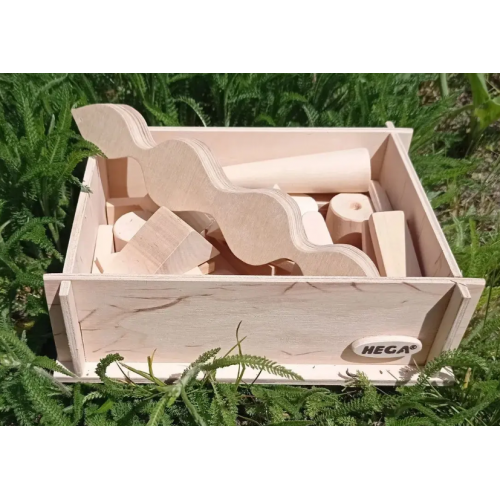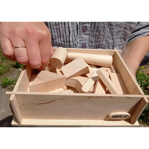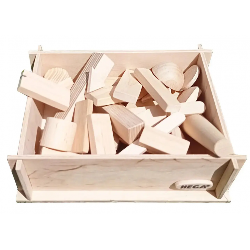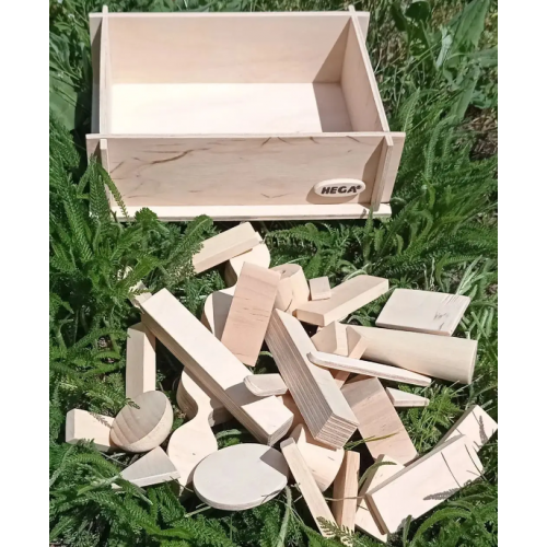 В наборі: дерев’яний короб, 31 геометрична фігура.
