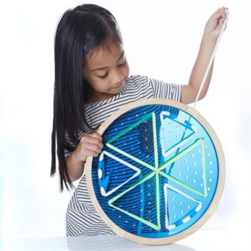 Виріб у вигляді яскравого набору з 3 великих рамок-фігур з отворами і різнокольоровими шнурівками. Можна створювати різні візерунки. Гра розвиває дрібну моторику, уяву, мислення.