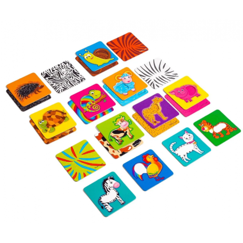 Розвивайте логіку, увагу, пам’ять і фантазію разом із яскравими картками! Поєднуйте тварин з їхніми бочками, вивчайте їхні назви, середовище проживання та цікаві факти.