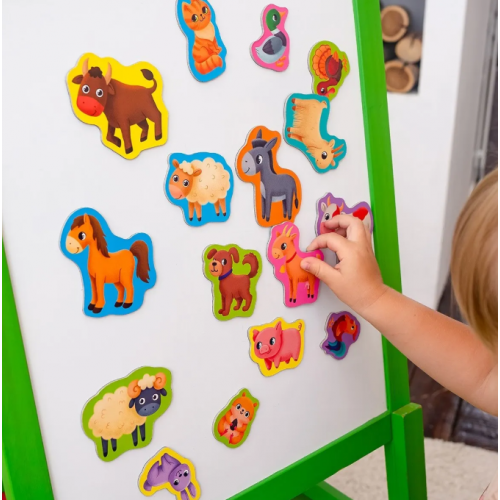 Грайте та розвивайтесь! Розглядайте яскраві магніти, вигадуйте їх назви, знаходьте відмінності. Набір ідеально підходить для гри на холодильнику чи будь-якій магнітній поверхні.