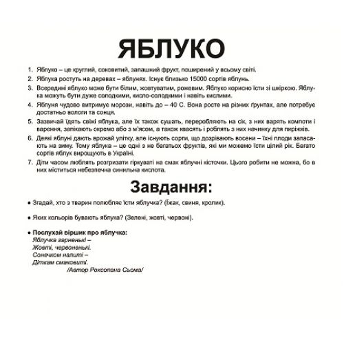 Перегляд яскравих картинок дозволяє дитині швидко засвоїти назви фруктів, запам’ятати їх написання, розвиває у неї інтелект та формує фотографічну пам’ять.